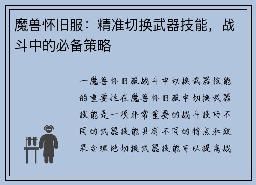 魔兽世界技能框如何调黑颜色 介绍 魔兽世界是一款大型多人在线角色扮演游戏,拥有丰富的技能系统。技能框是游戏中展示玩家技能的界面,调整技能框的颜色可以让界面更加个性化。本文将详细介绍如何调整魔兽世界技能...
